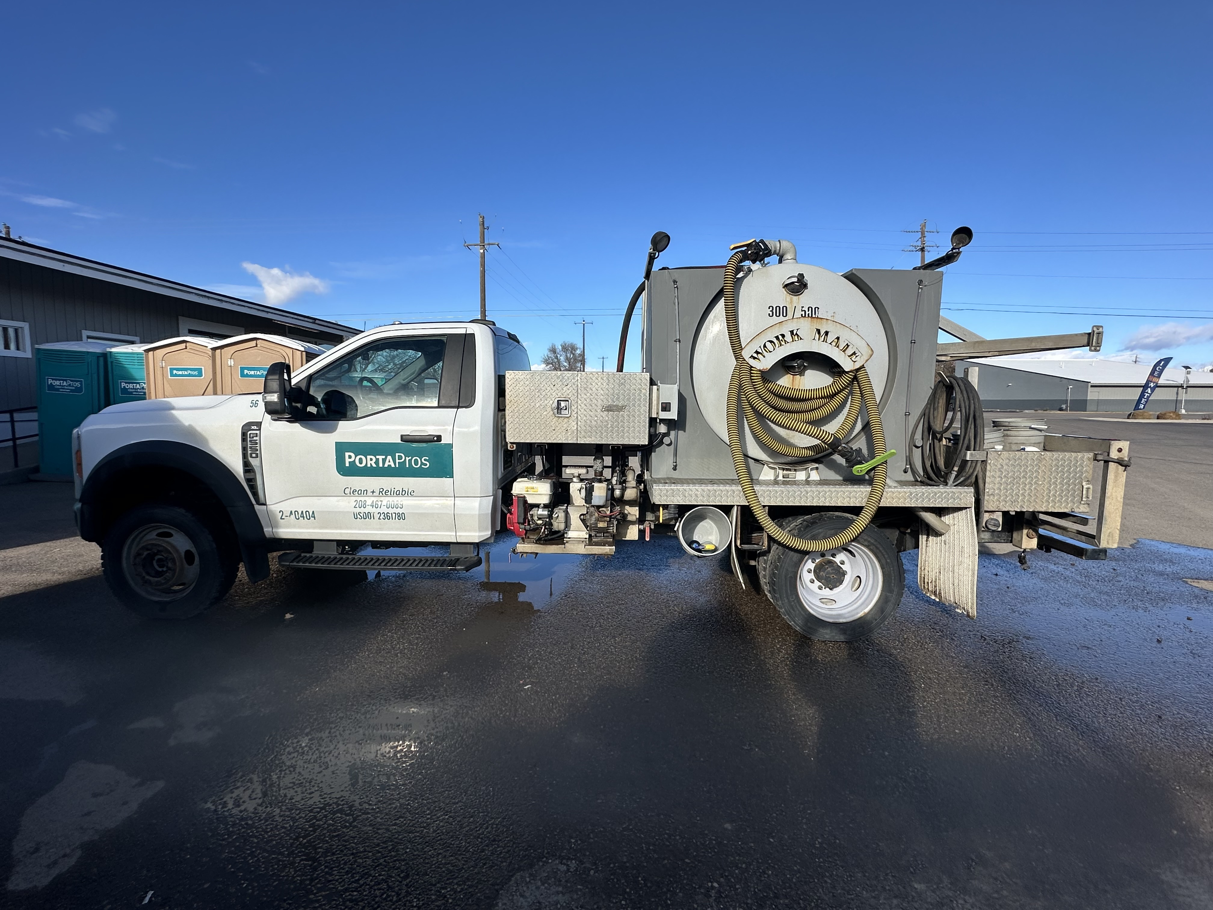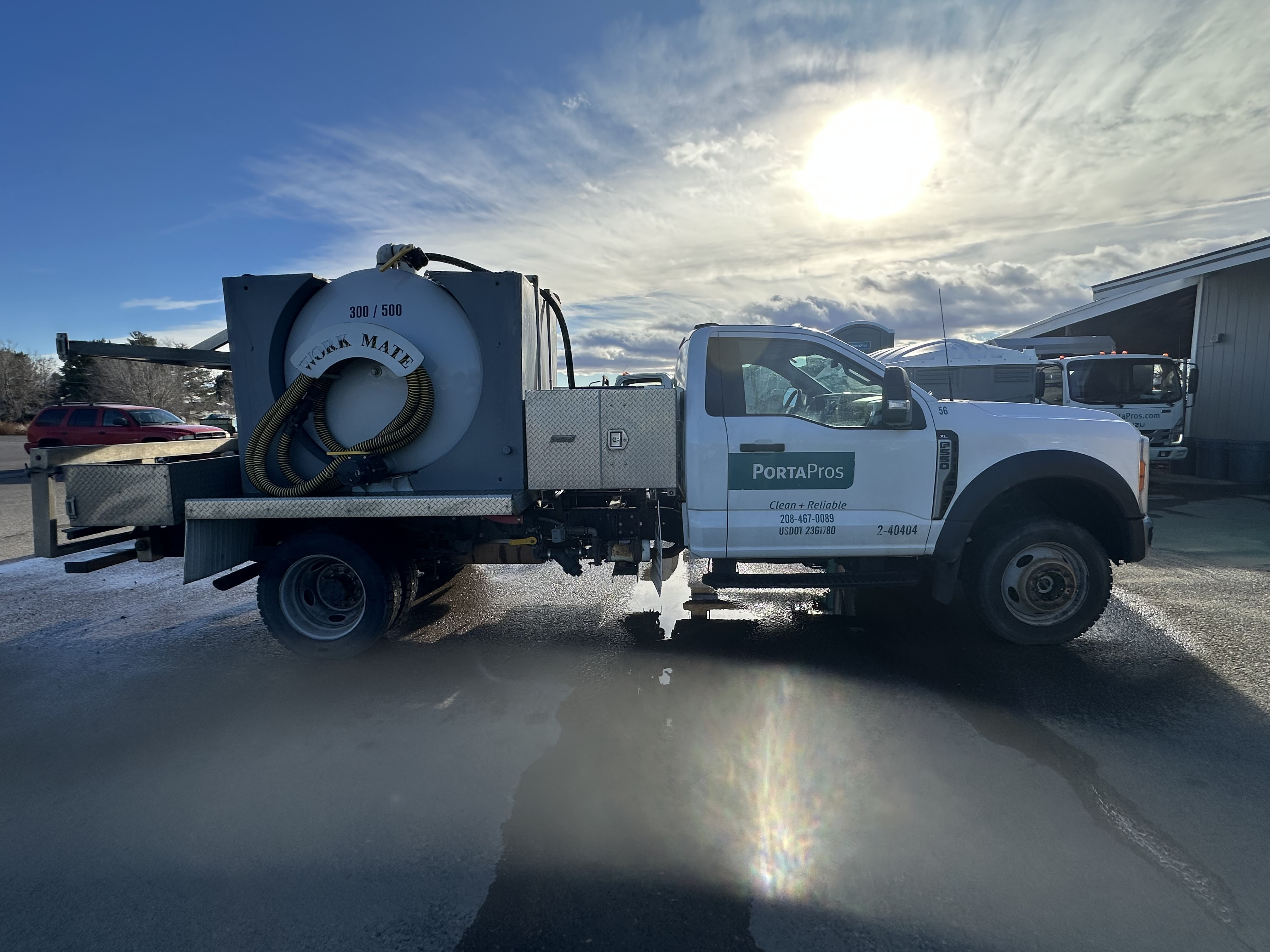 2023 Ford F550 Super duty XLT 7.3 V8, 4x4, FMI service body (500 waste/350 water), 108,000 miles, drop down 2 unit toilet hauler with E-trac. Asking $59,995. Please contact Ricky 208-949-0117 or email Ricky@portapros.com. (P07)
